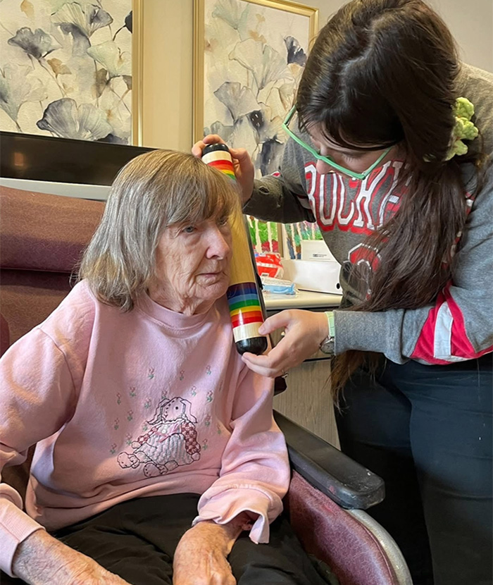 Led by a board-certified, state-licensed music therapist, sessions are designed to meet residents where they are and create moments of joy, recognition, and connection, often through songs they have loved for decades.